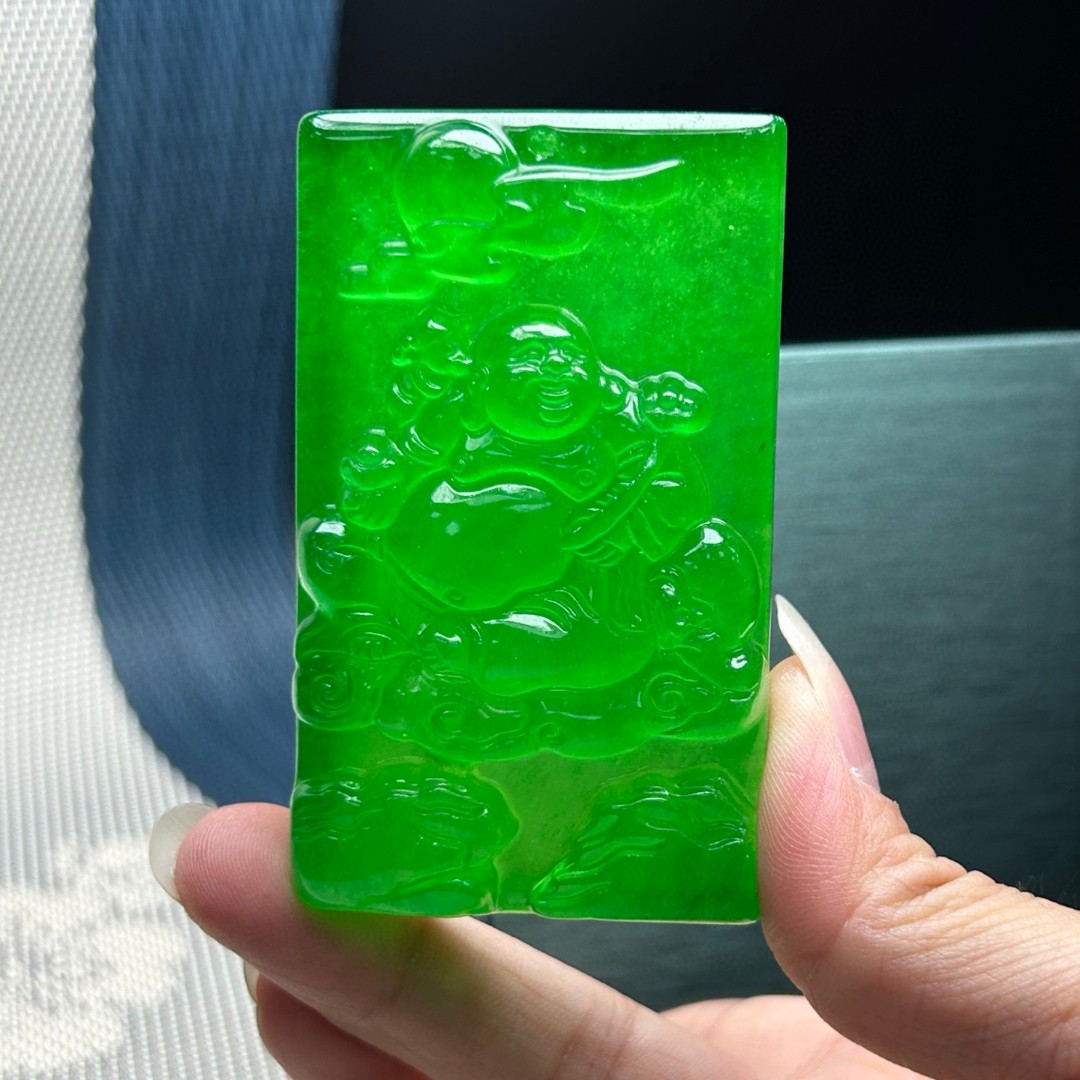 缅甸高冰满绿翡翠色玉石吊坠钱袋佛挂件吊坠饰品大气人物佛