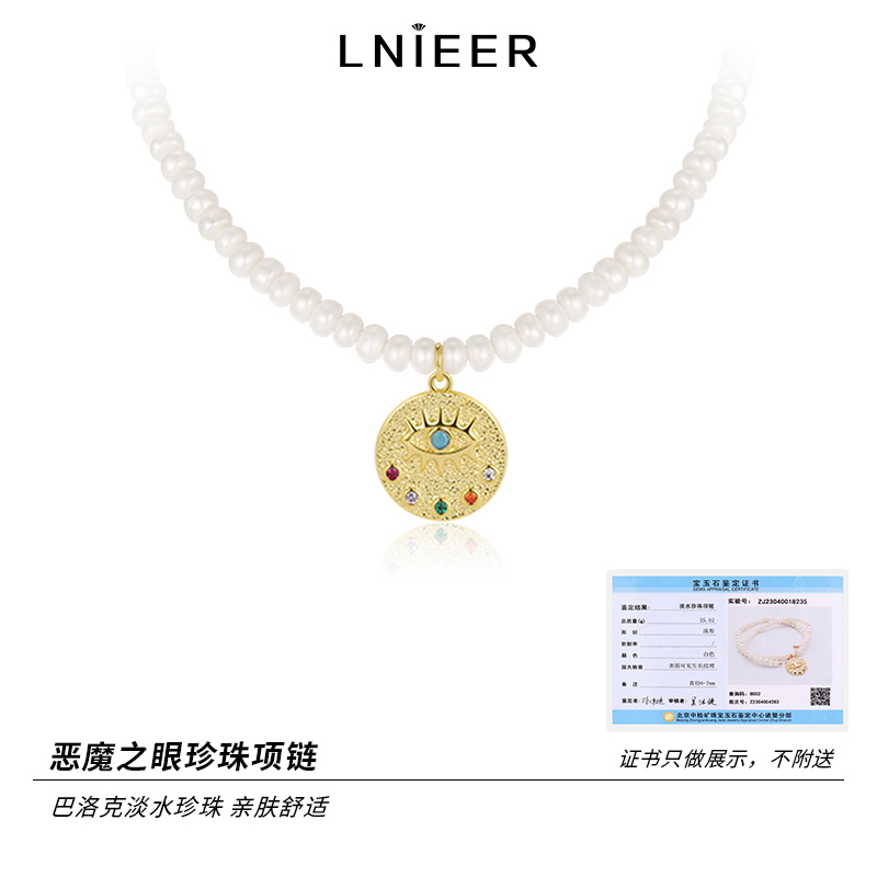 白百何同款天然淡水珍珠项链女高级轻奢小众感锁骨链复古硬币吊坠