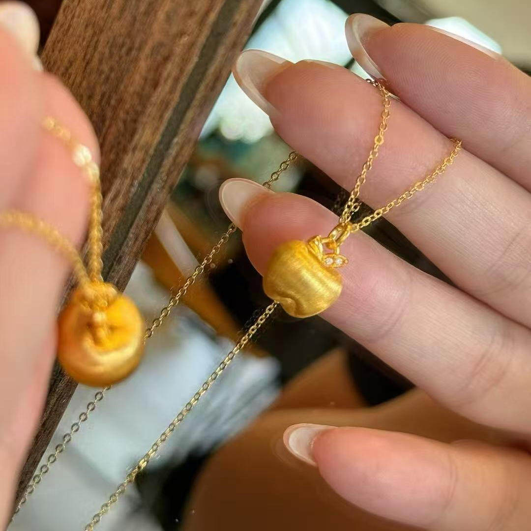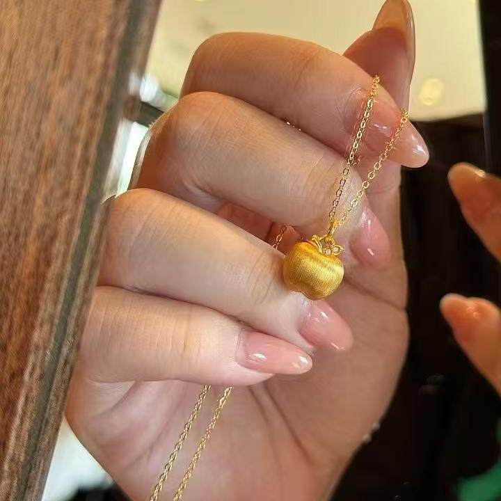 新中式拉丝点钻苹果项链女新款吊坠平安夜圣诞节礼物送女友JJ