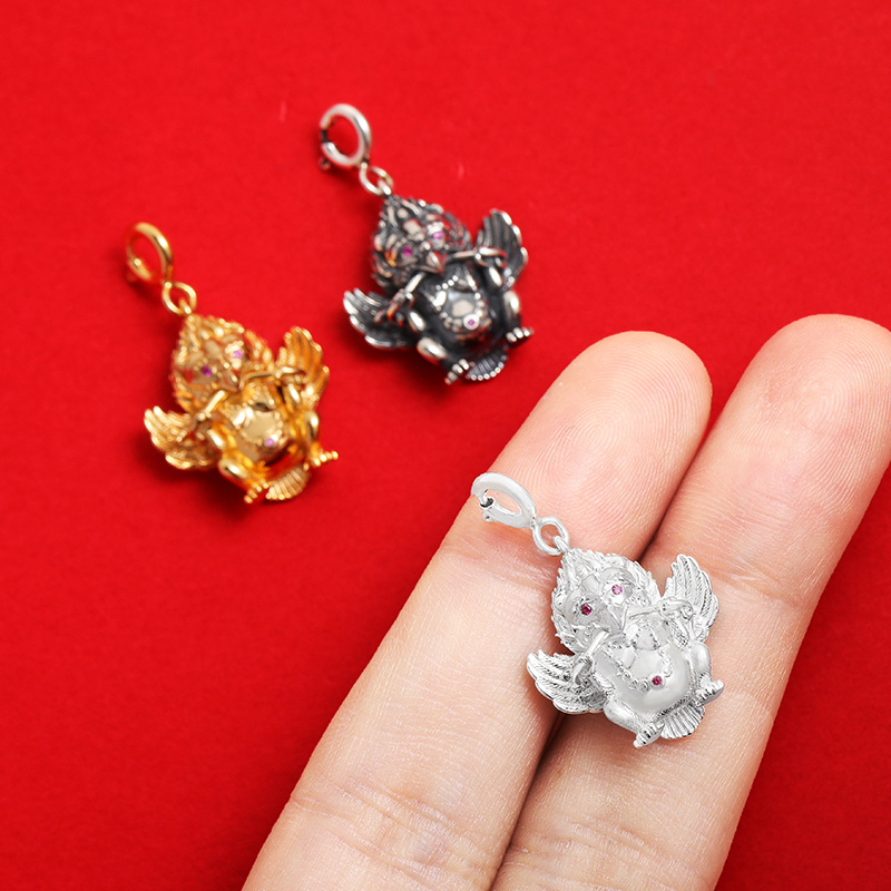 S925纯银镀金大鹏金翅鸟复古迷你大鹏鸟护法S文玩卡子卡扣小吊坠
