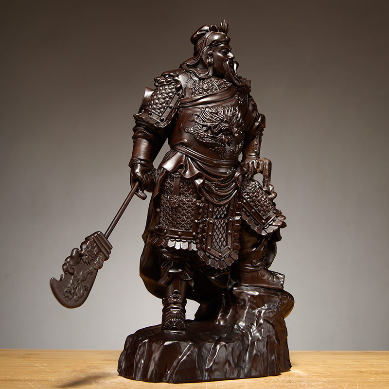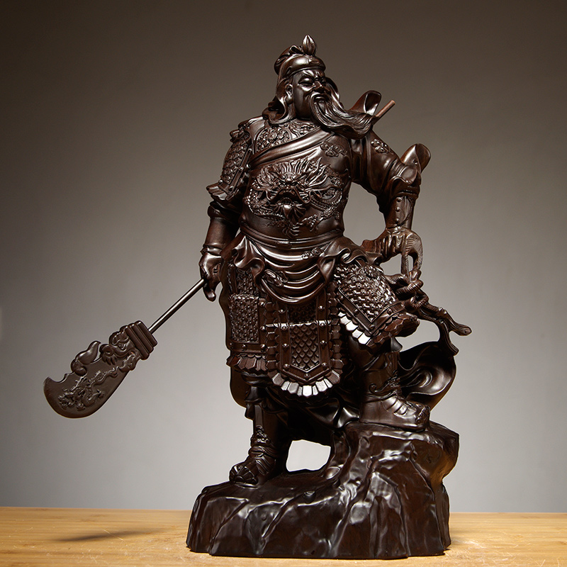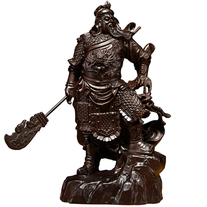 黑檀木雕关公佛像关二爷雕刻摆件家居客厅玄关红木装饰店铺工艺品