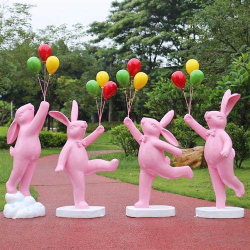 玻璃钢卡通气球兔子雕塑户外园林草坪绿化装饰幼儿园小区公仔摆件