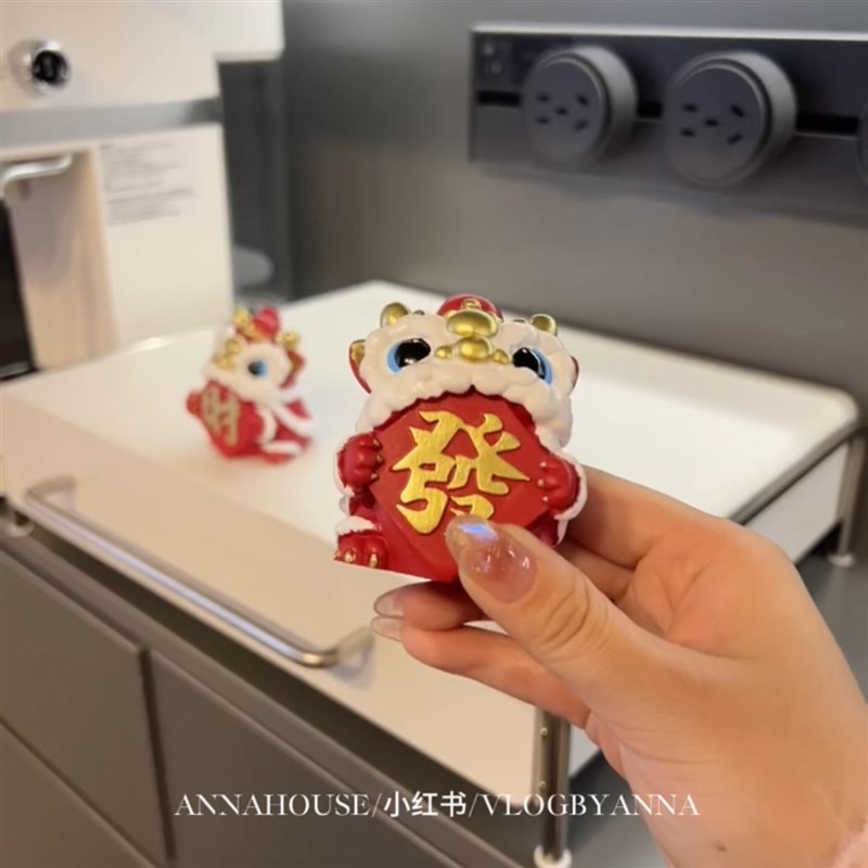 舞狮摆件树脂舞龙小狮子玄关桌面手办醒狮麒麟公仔新年装饰2025年