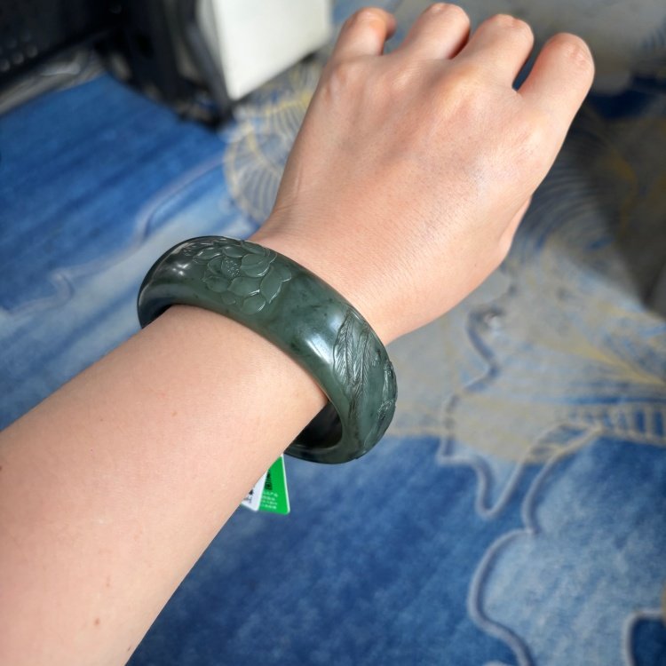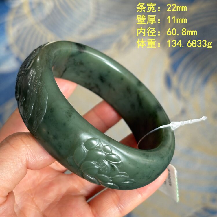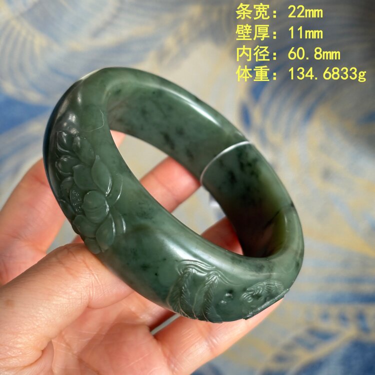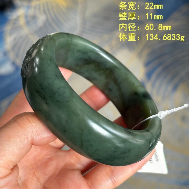 N60.8青玉籽料“花青”手镯 有原皮 朕®开仓新疆和田玉