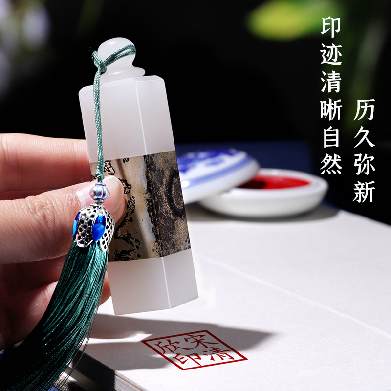 威弗列德篆刻定制姓名印章名字阿富汗石头白玉方章中国风古风摆件