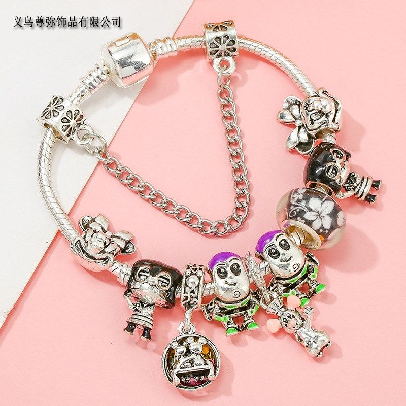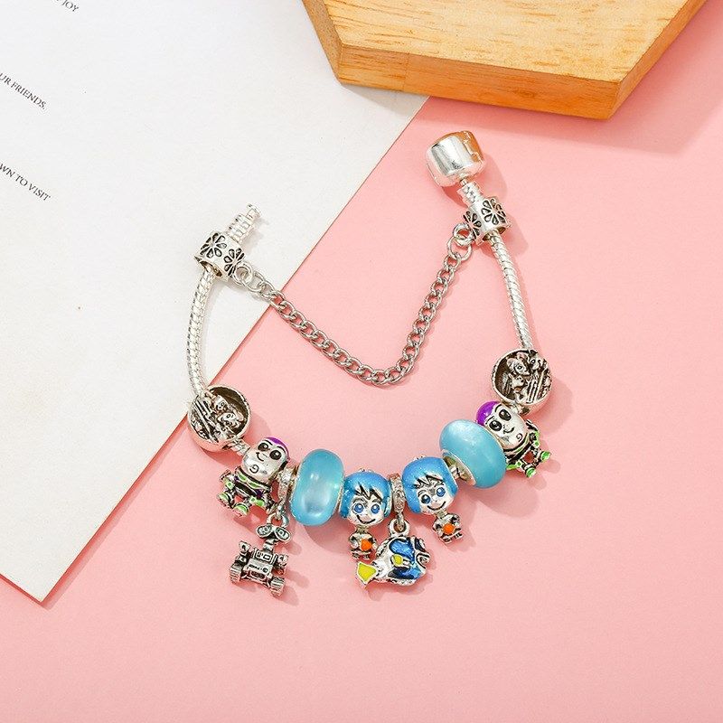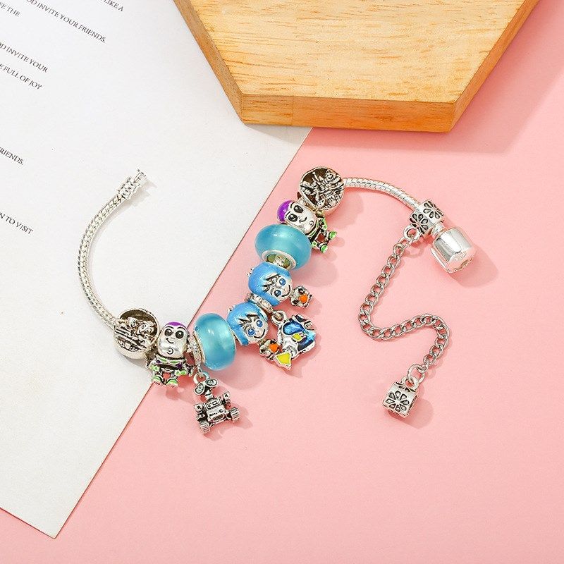 卡通手链 精美蓝色巴斯男孩串珠配以镀银925蛇骨链作为孩子的礼物
