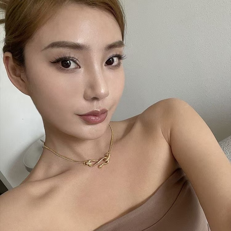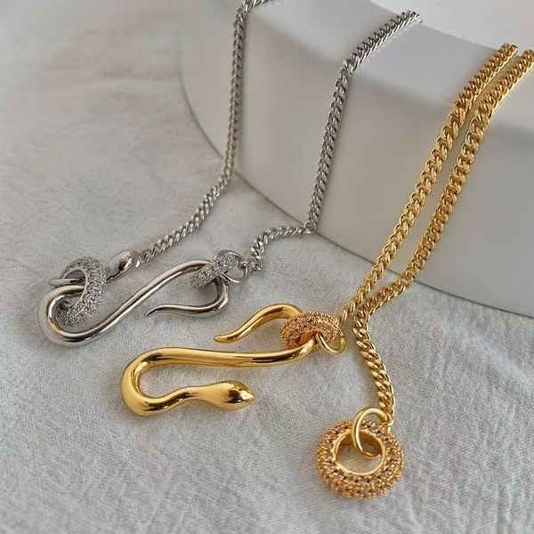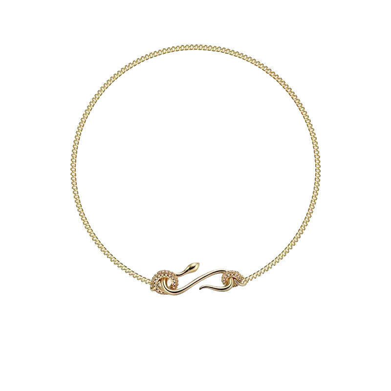小众设计感蛇形项链男女款满钻圆环灵蛇锁骨链男中性情侣简约颈链