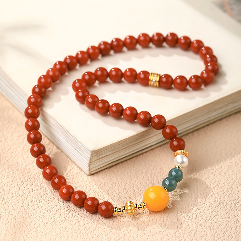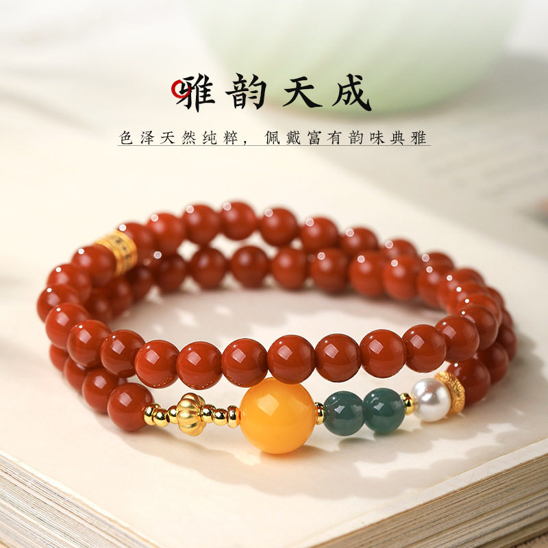 天然南红玛瑙双圈手串蜜蜡蓝水翡翠珠2025新款红色饰品送女友