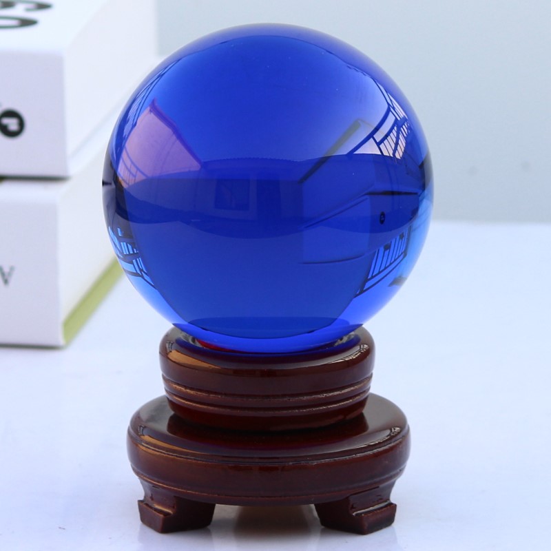 蓝色K9人造水晶玻璃球桌面玄关简约现代摆件家居饰品工艺品乔迁