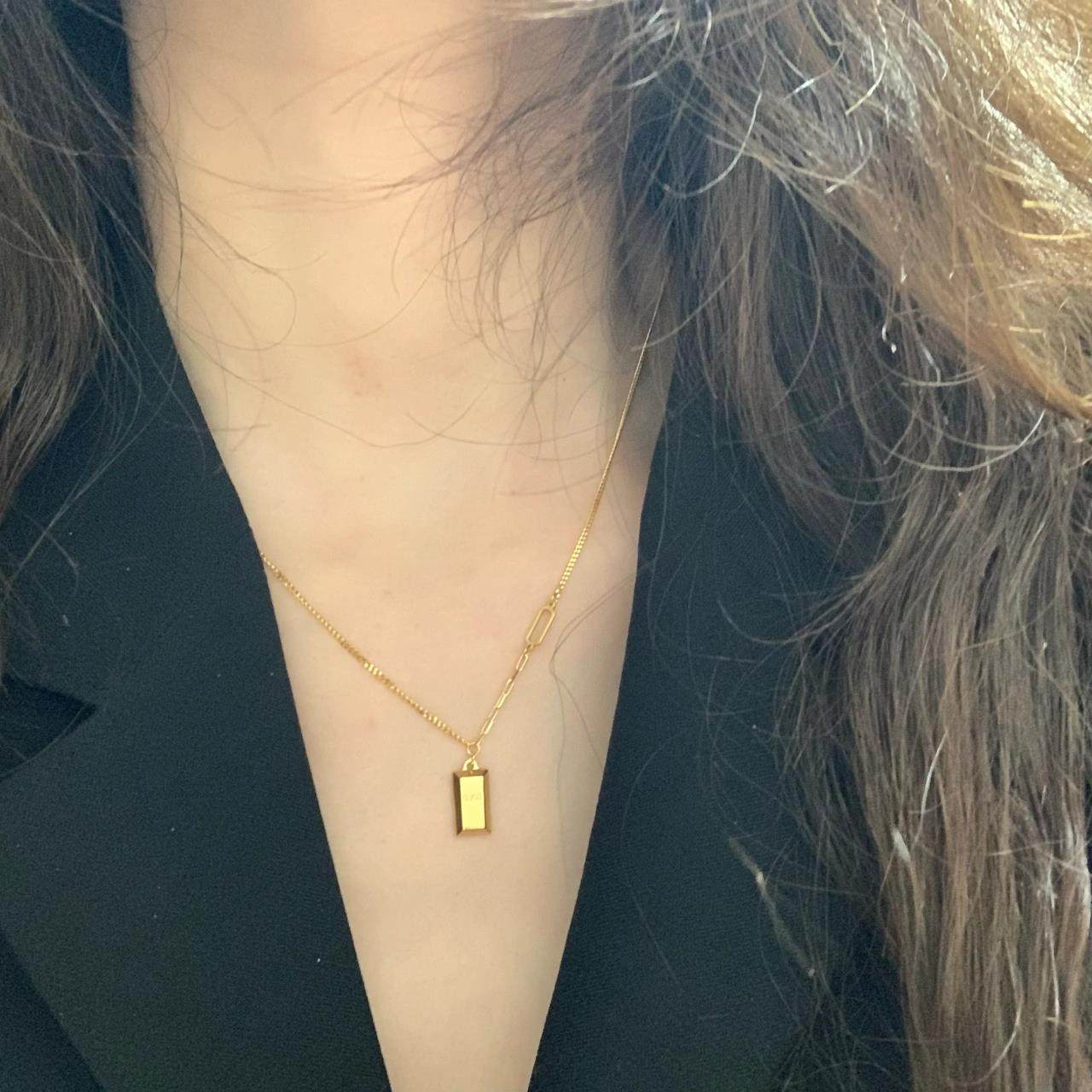 小金条钛钢项链女士不掉色高级感锁骨链轻奢小众颈链高级感毛衣链