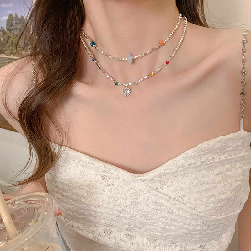 碎银子小米珠项链女士小众设计彩色甜酷锁骨链吊坠白色珍珠款颈链