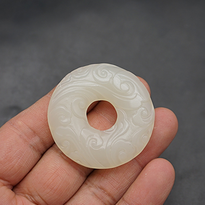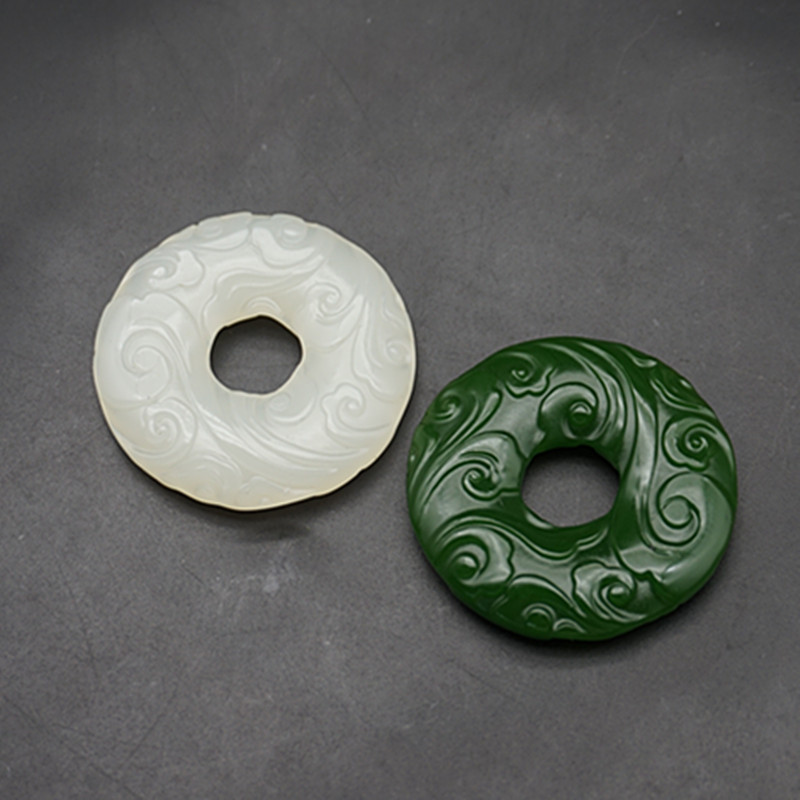 仿白玉祥云如意纹平安扣吊坠挂件仿碧玉双面吊坠圆环白色绿色项坠