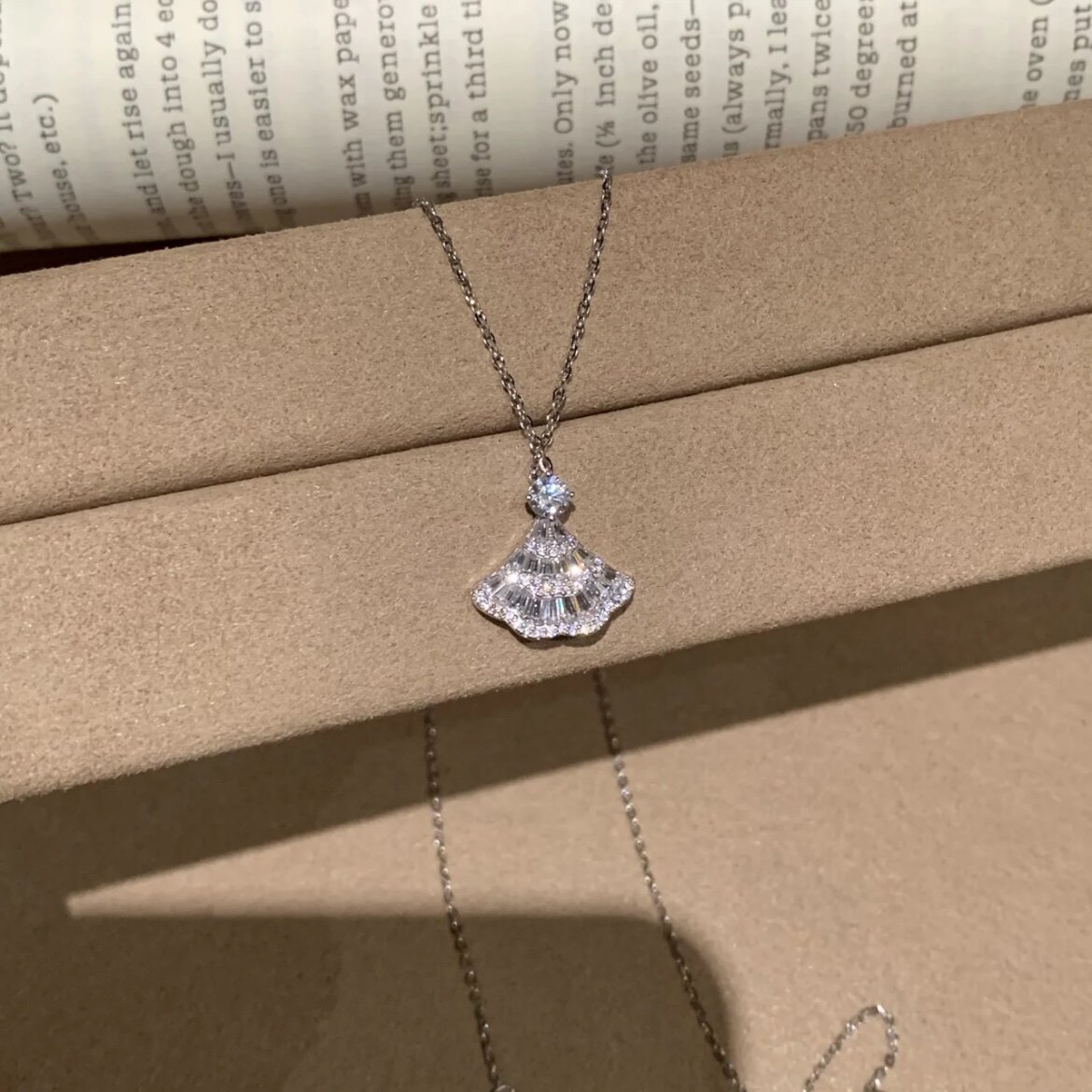 【公主的裙摆】S925纯银锆石扇形吊坠项链女满钻轻奢高级感锁骨链
