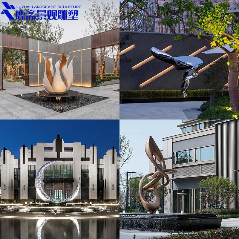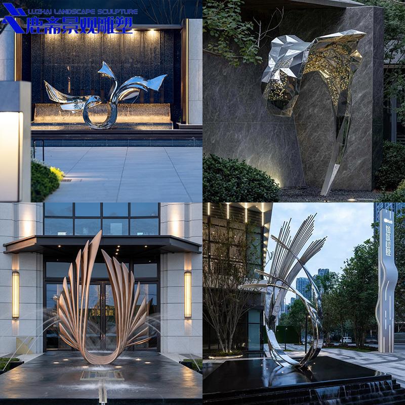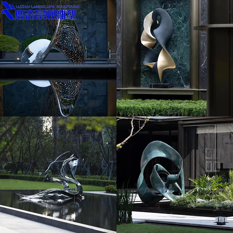 不锈钢抽象艺术景观雕塑定制金属镜面售楼部广场小区水景落地摆件