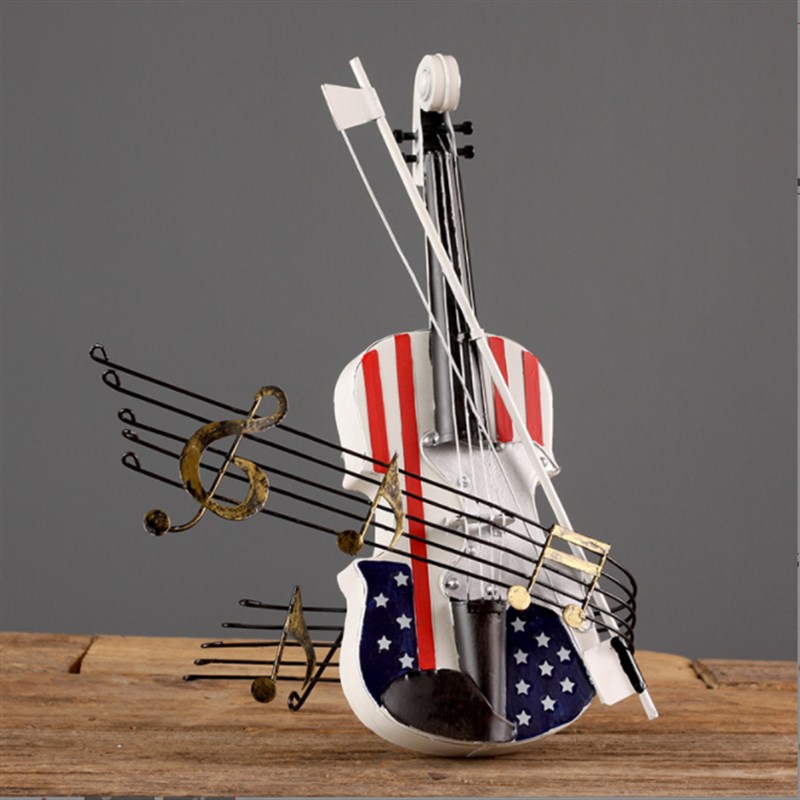覆古怀旧铁艺吉他小提琴r摆件餐厅酒吧G咖啡厅装饰酒柜摆设乐器道
