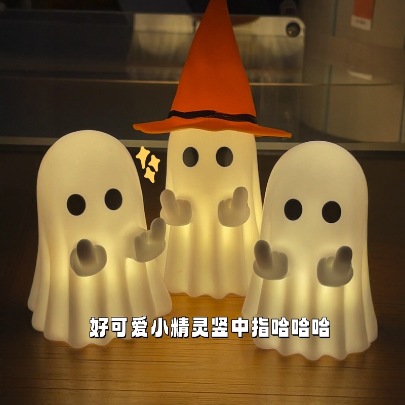 可爱幽灵摆件新款创意竖中指挑衅幽灵桌面装饰品新年礼物送朋友