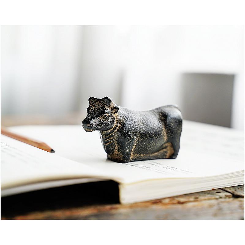 新款孺子牛日本进口南铁器生肖牛年桌书面镇纸摆件 房铸铁文部镇