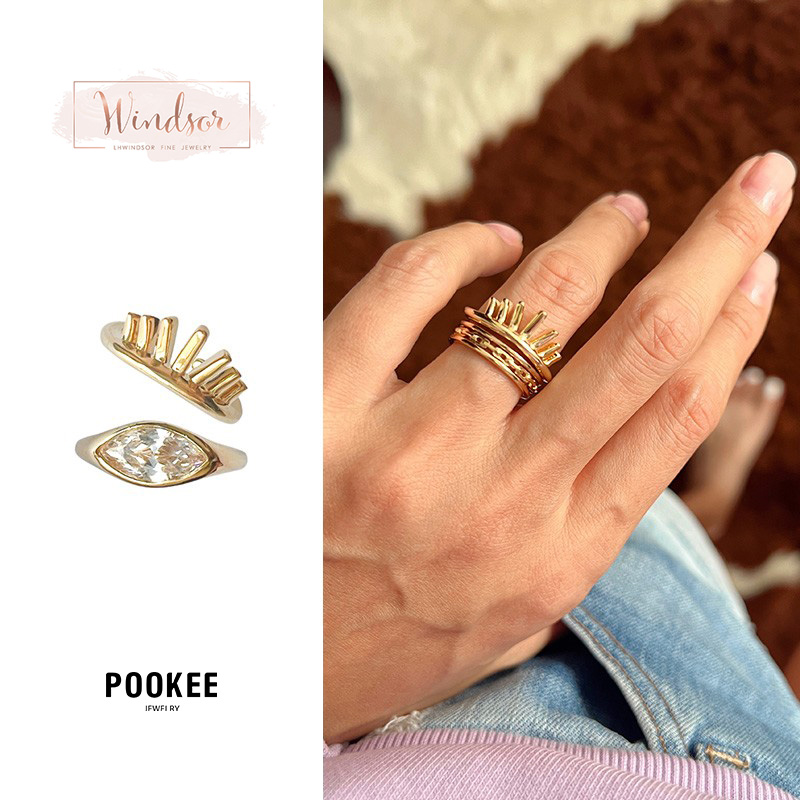 LHWindsor 长睫毛组合金色戒指女小众设计时尚个性复古轻奢高级感