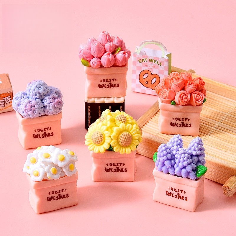 清新治愈花卉盆栽树脂配件 玫瑰雏菊diy桌面车载小摆件奶油胶配件