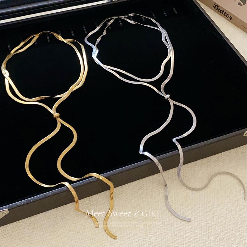 抽拉式项链女小众轻奢设计高级感蛇骨链简约百搭颈链长款毛衣链