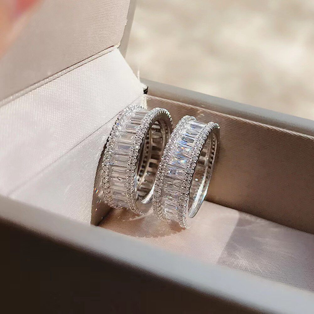 PT950铂金进口D色莫桑石满钻梯方排戒简约可过笔食指指环潮流女新