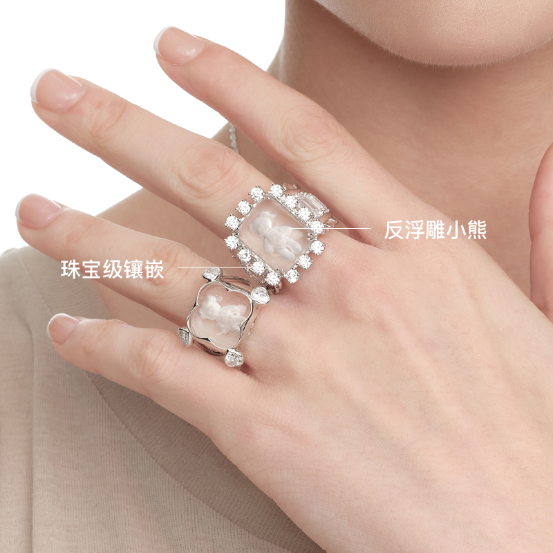 YVMIN尤目 水晶熊宽戒指锆石镶嵌戒圈设计师生日礼物春夏新品