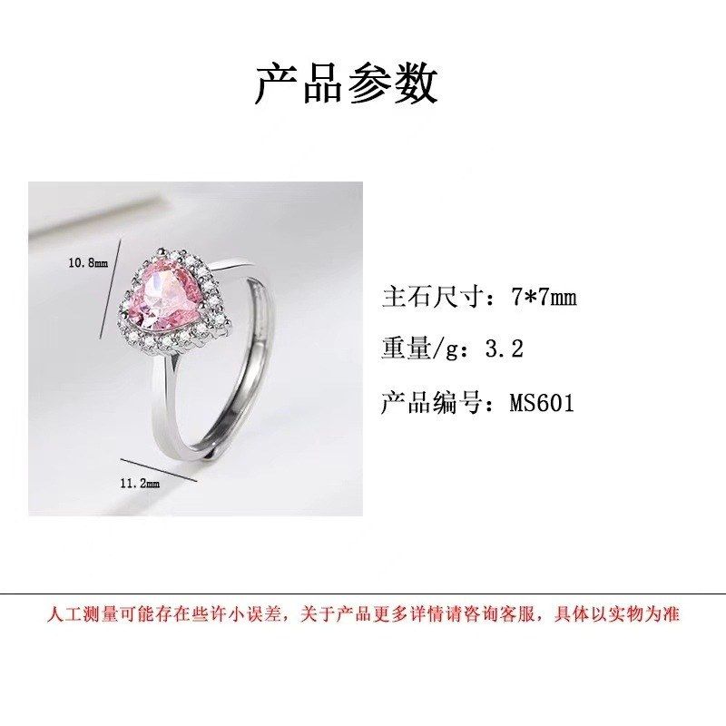 欧美跨境新款亚马逊锆石活口女个性奢华满钻彩宝心形戒指直播批发