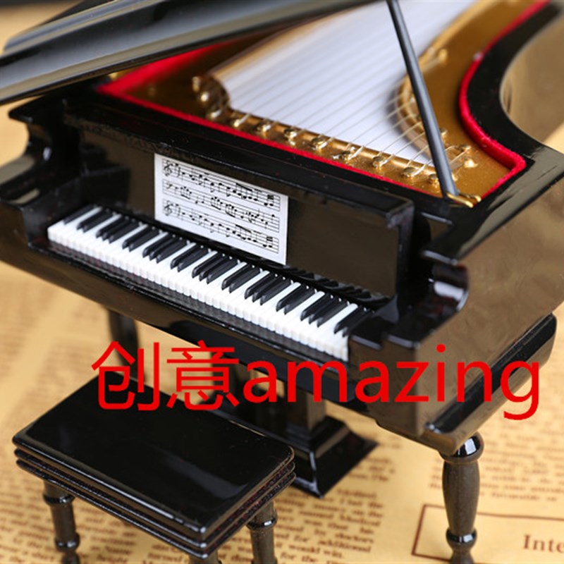 包邮三角钢琴模型迷你钢琴摆件大尺寸八音盒礼盒音乐盒送老师朋友