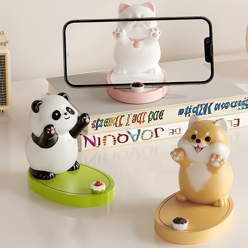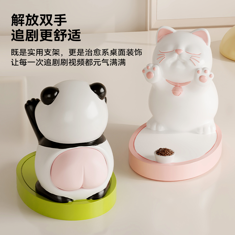 猫咪摆件熊猫手机支架桌面可爱办公室工位稳定情绪生日礼物女生