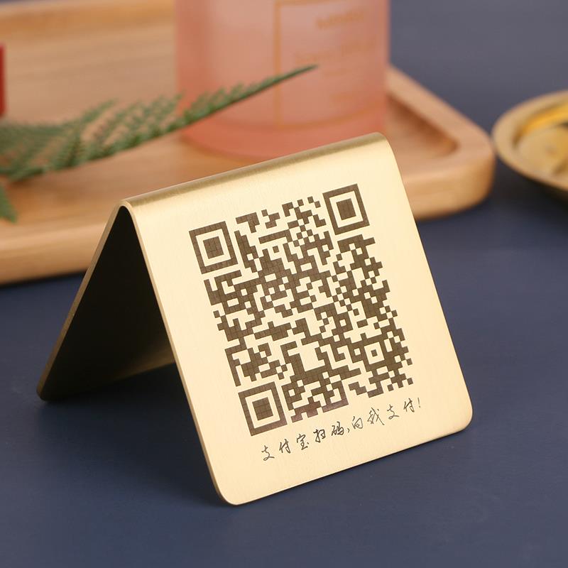 黄铜二维码logo指示牌店铺装饰收银台定制个性扫码点单牌摆件立牌