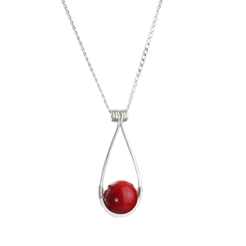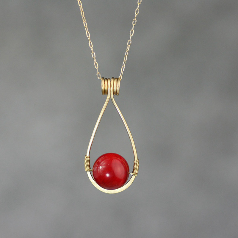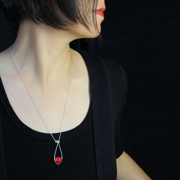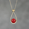 素元 14K注金吊坠水滴项链女结婚喜庆红色本命年红色纯银锁骨链