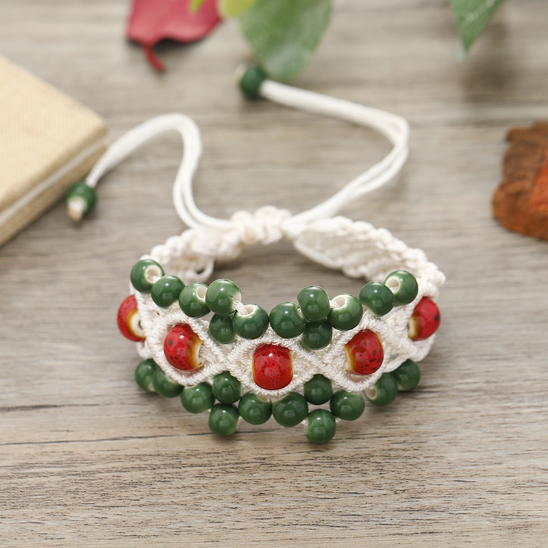 可调节复古编织陶瓷手链森系民族风百搭简约气质手绳文艺手工饰品