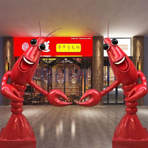 龙虾雕塑玻璃钢大型卡通小龙虾酒店门迎宾海鲜馆装饰龙虾模型定制