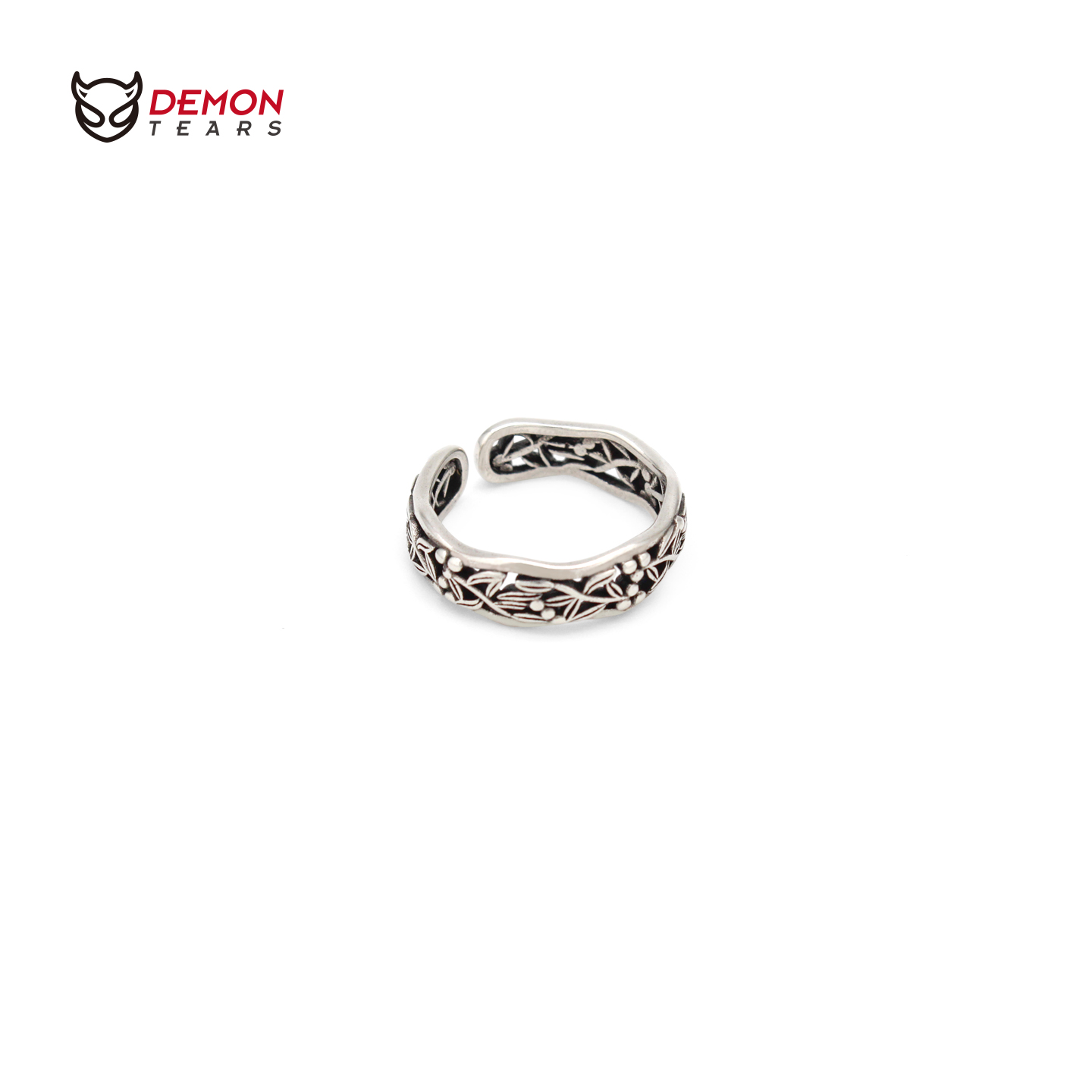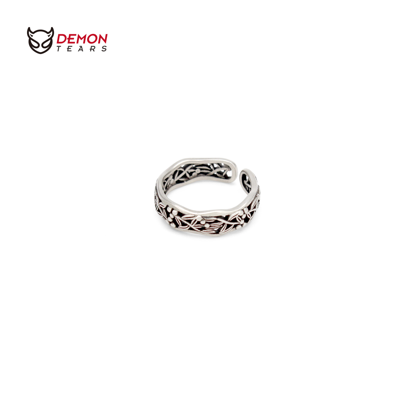 DEMONTEARS藤蔓花枝镀银复古小众设计戒指男女个性开口可调节指环