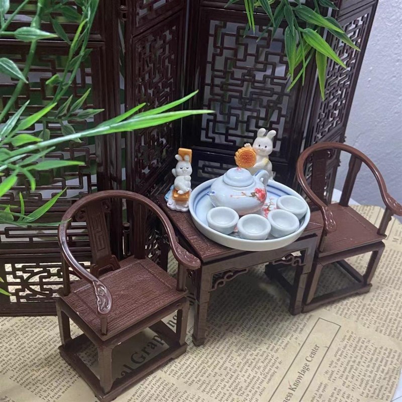 古风拍照c迷你摆件模型微缩家具小圈椅官桌子屏风摆件复古全套