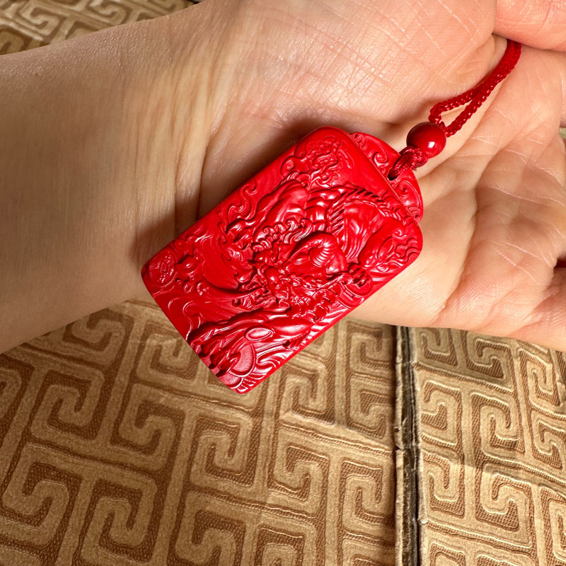独角神兽吊坠台湾原矿朱砂挂件方牌火麒麟玉佩项链男女貔貅钥匙扣