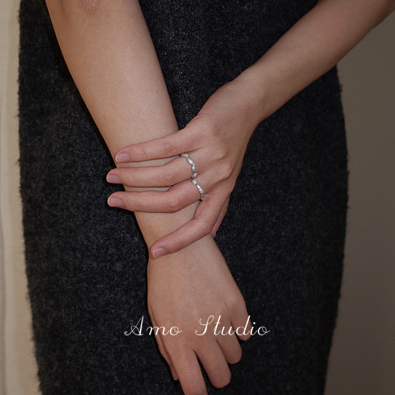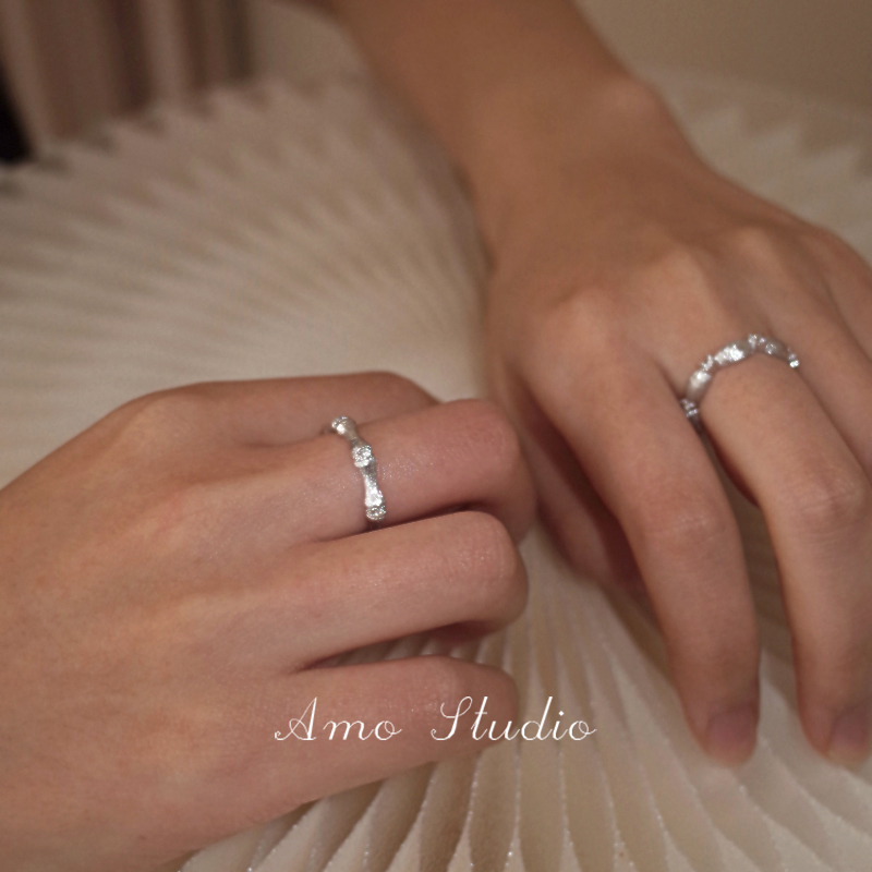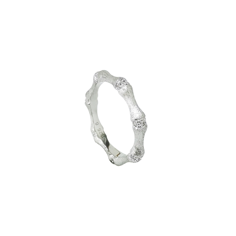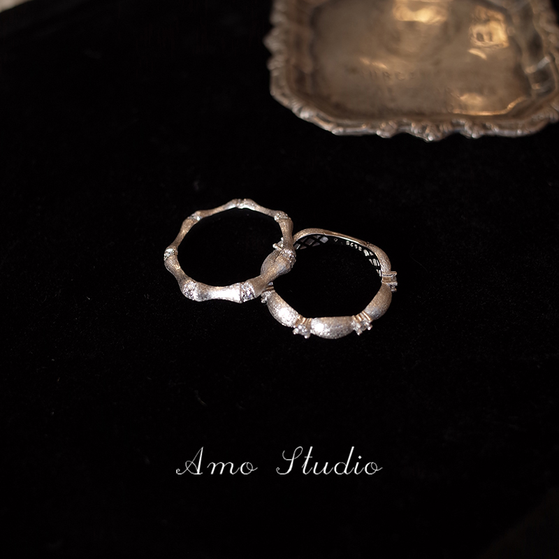 AMO轻奢高级感拉丝缎带竹节纯银戒指小众设计食指戒简约时尚指环
