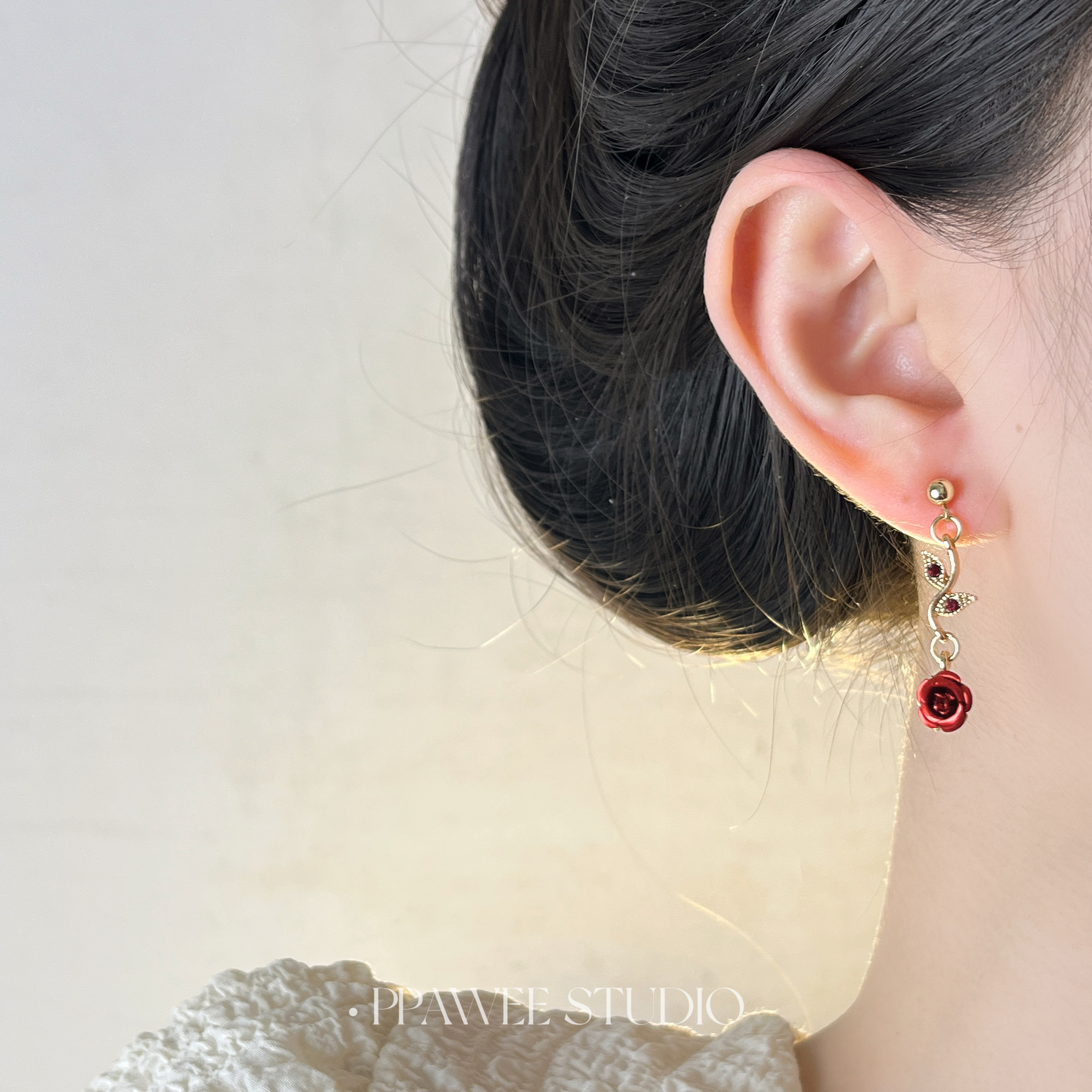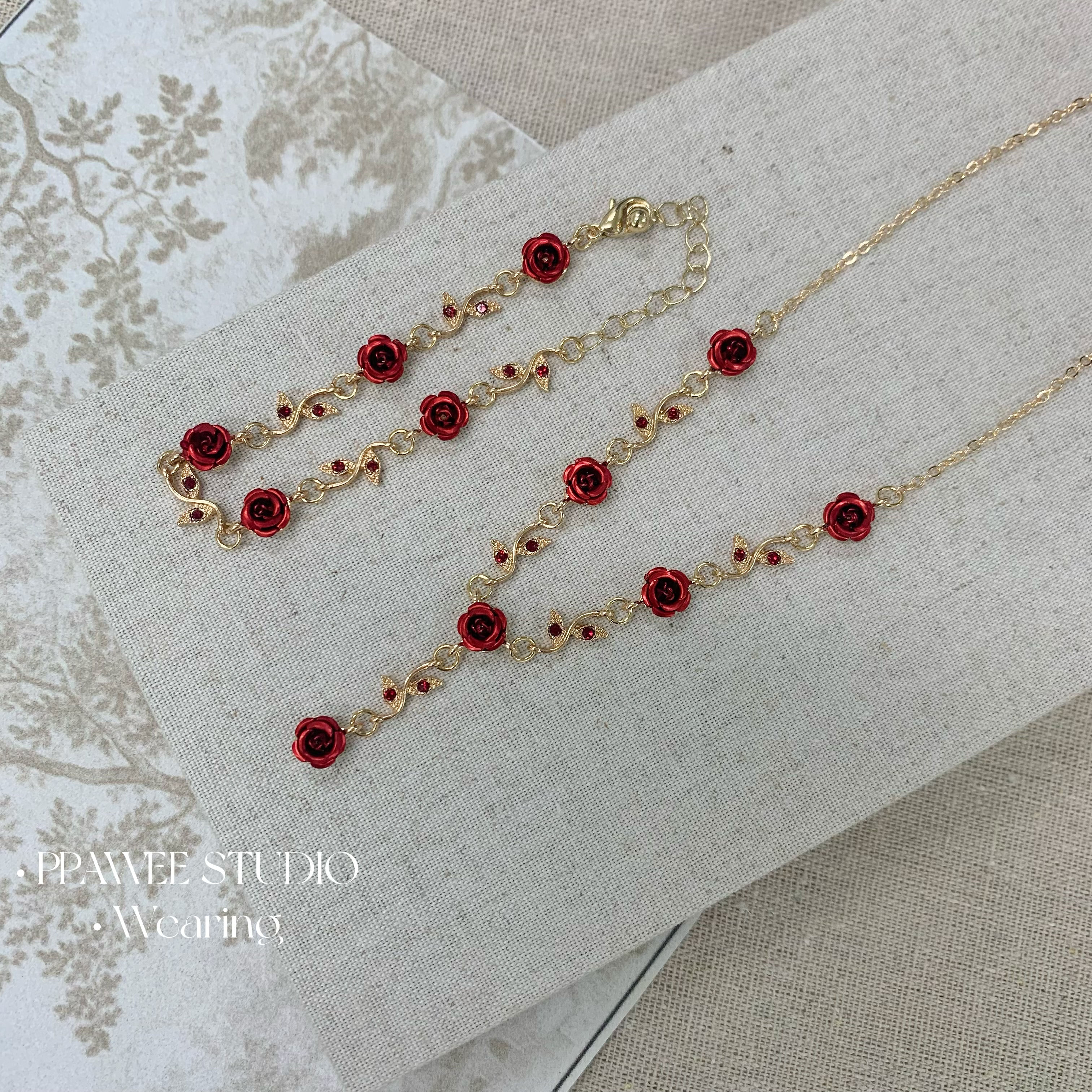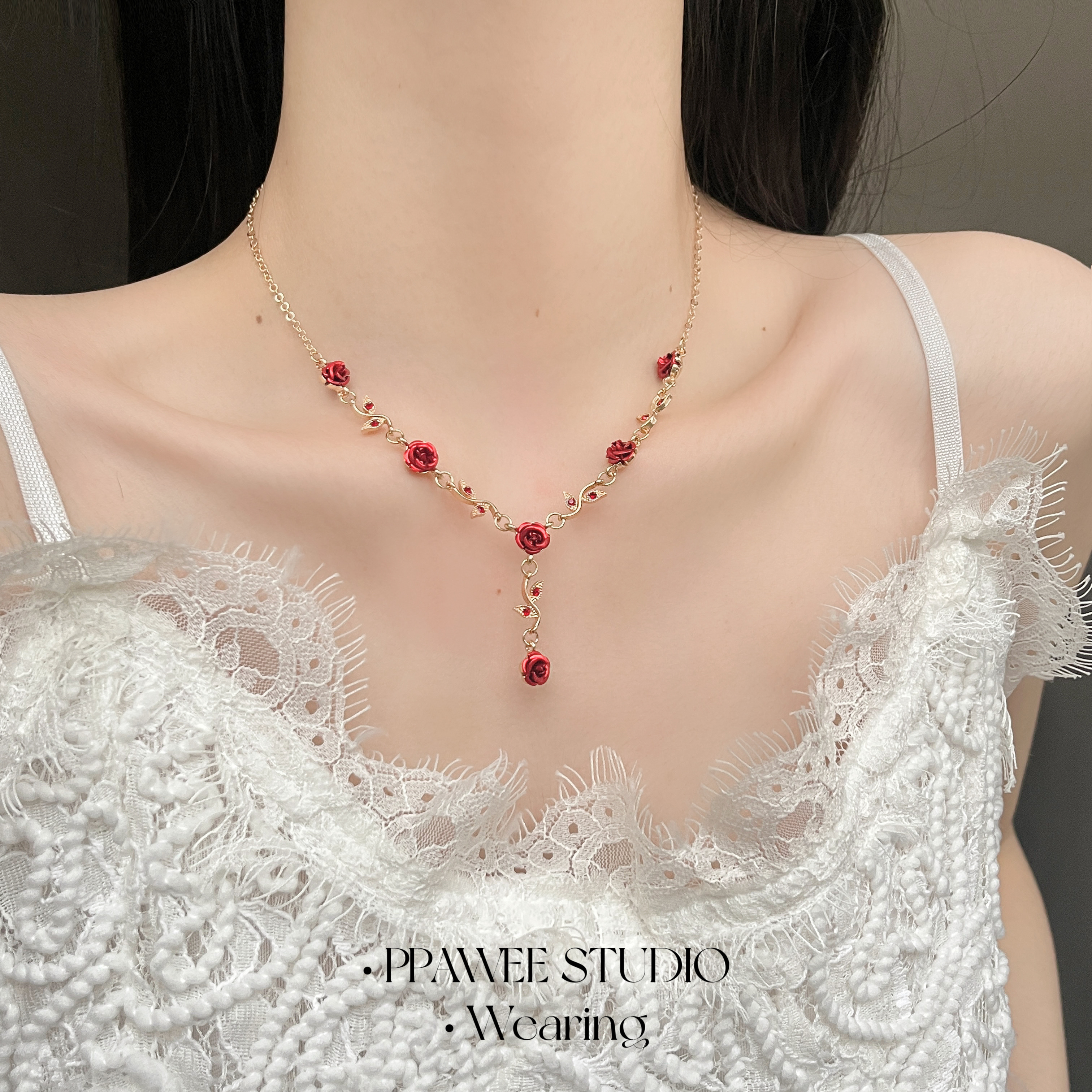 PPAWEE|玫瑰园新色复古红色花朵吊坠项链女法式森系金色锁骨颈链