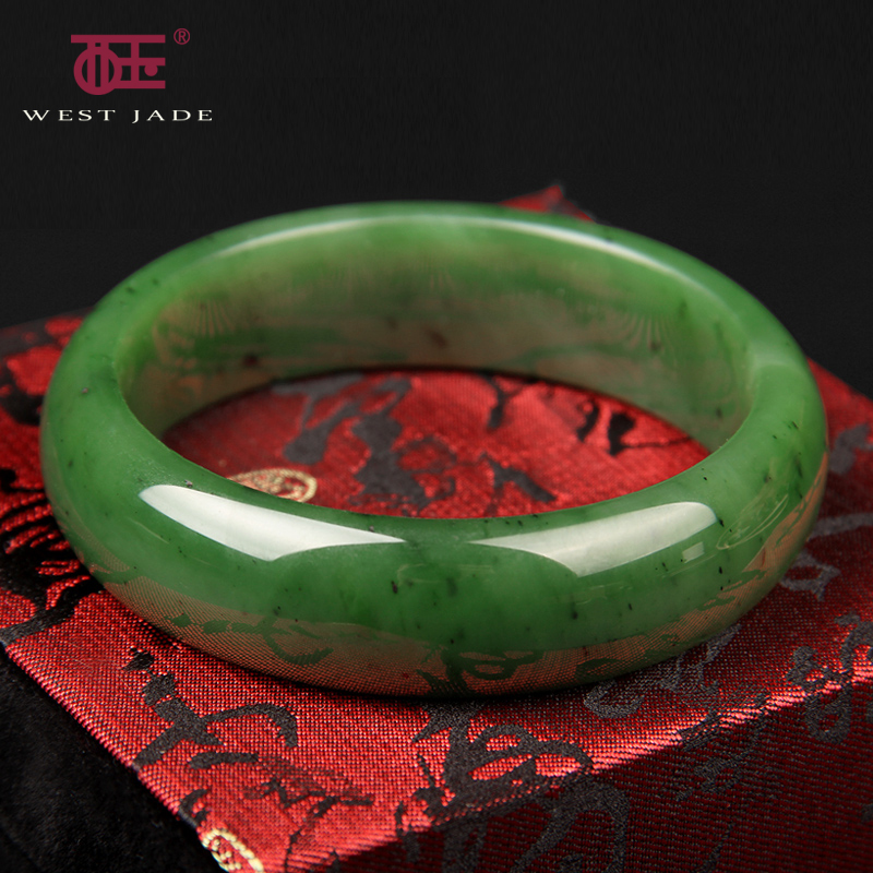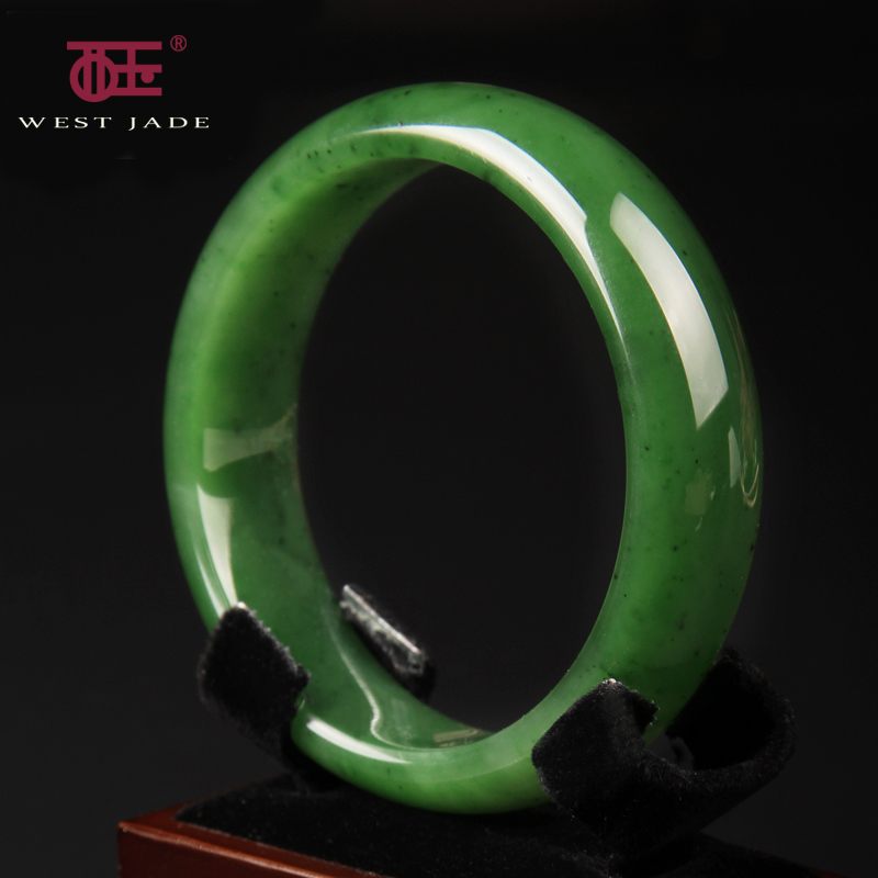 西玉和田玉手镯碧玉菠菜绿玉石玉镯子女款玉器玉手镯正品带证书