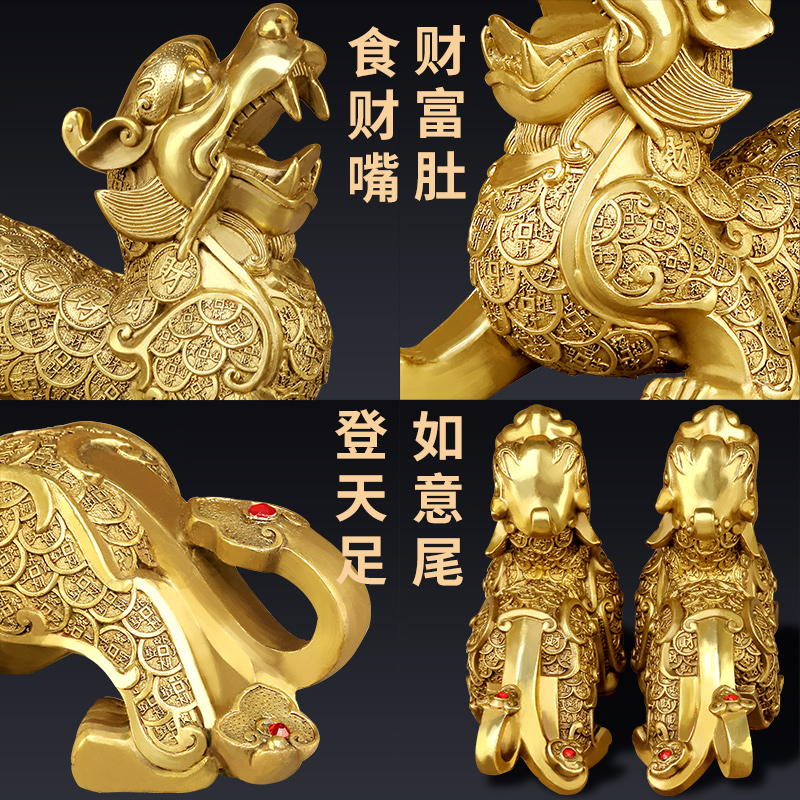 貔貅摆件护家招財送礼店铺办公室小号皮丘纯铜精品大貔貅摆件一对