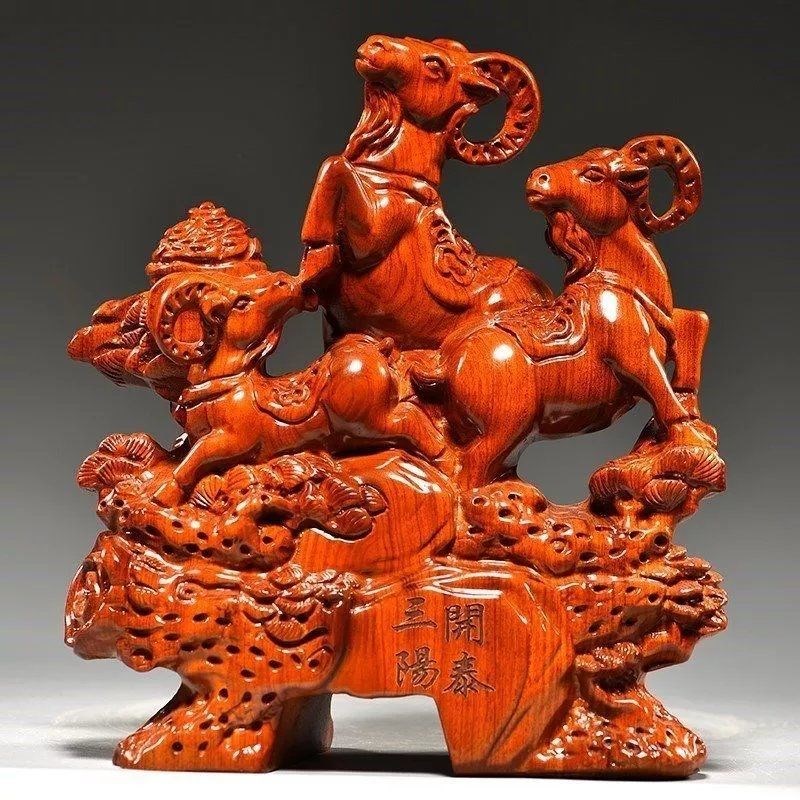 红色三羊开泰摆件实木雕刻三阳开泰十二生肖羊家居玄关补角装饰品