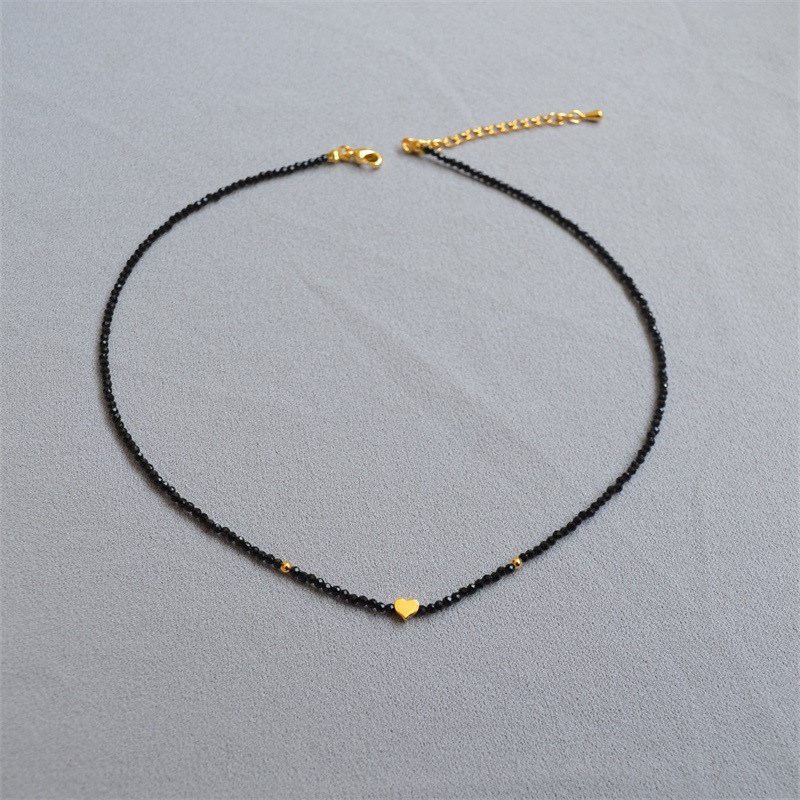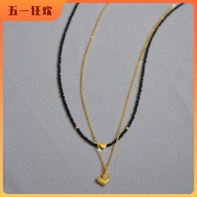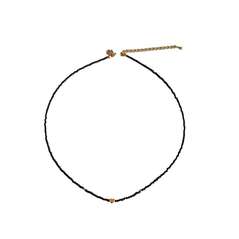 法式气质极简小爱心黑色串珠项链小众个性设计感项链叠带锁骨链女