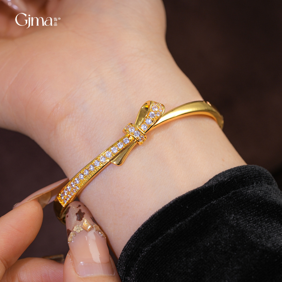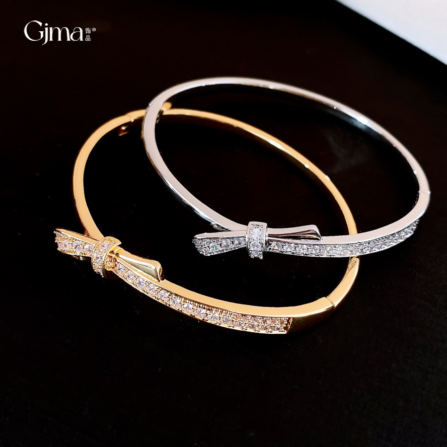 Korean INS Zircon Geometric Bow Clasp Bracelet Luxury Bangle