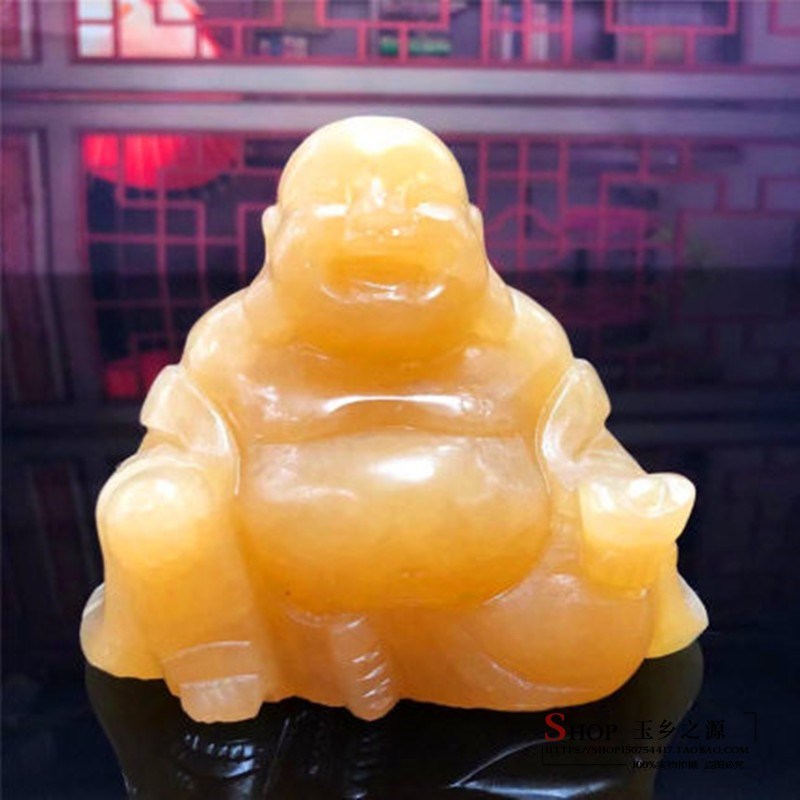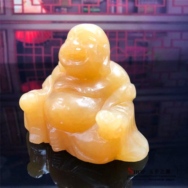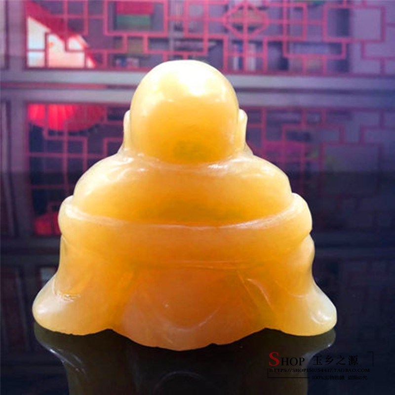 天然米黄玉弥勒佛摆件简约现代客厅电视柜办公桌T面装饰中式玄关
