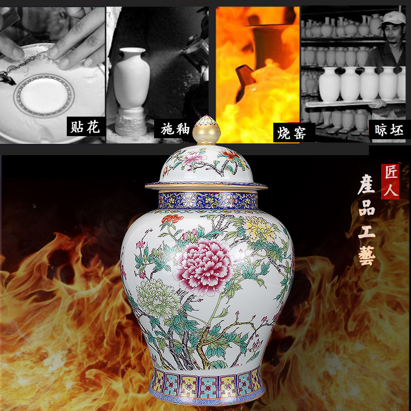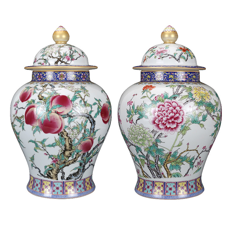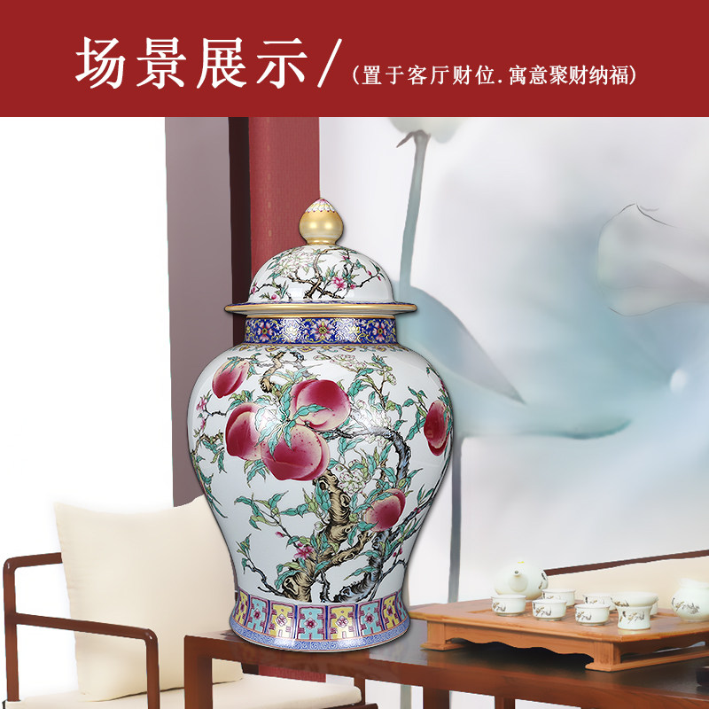 景德镇陶瓷仿古珐琅彩九桃将军罐大清乾隆官窑收藏装饰工艺品摆件