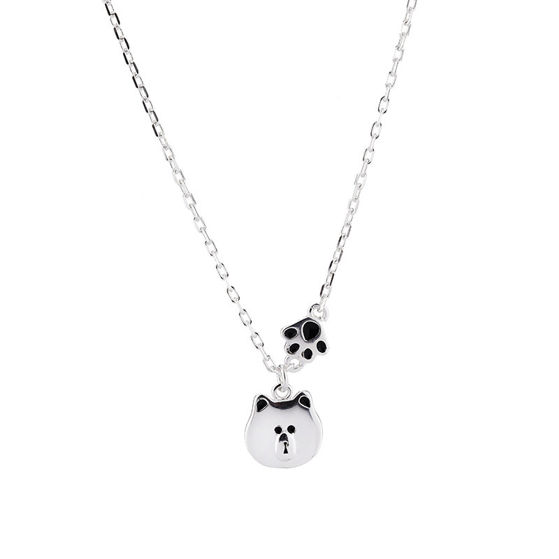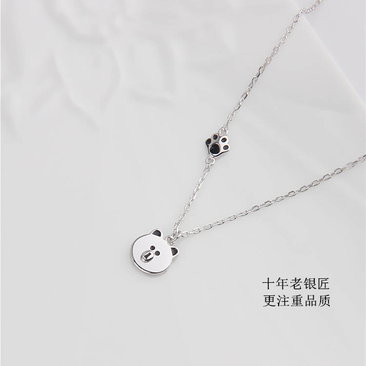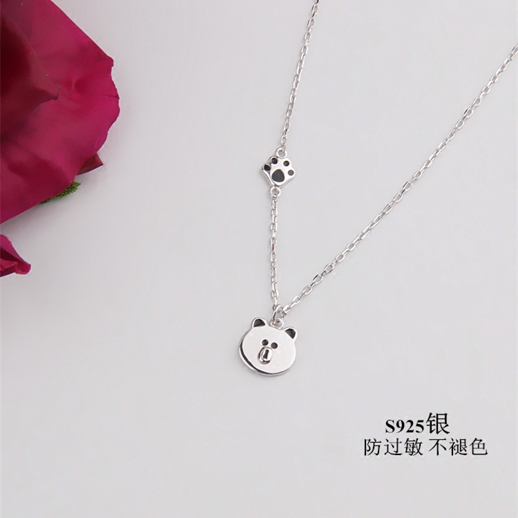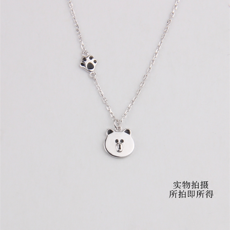 S925纯银布朗熊项链可爱甜美简约百搭女日韩小熊锁骨短链吊坠项链