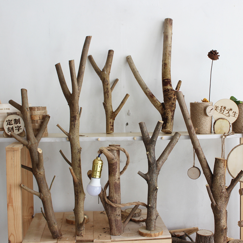 网红树枝DIY台灯装饰材料 小树杈带底座 干树枝 网店拍图摄影道具