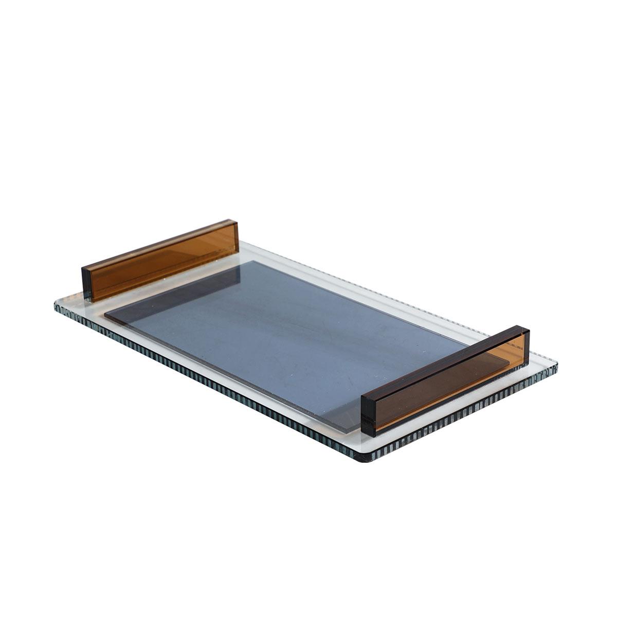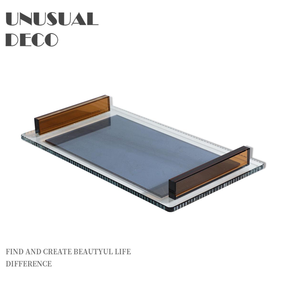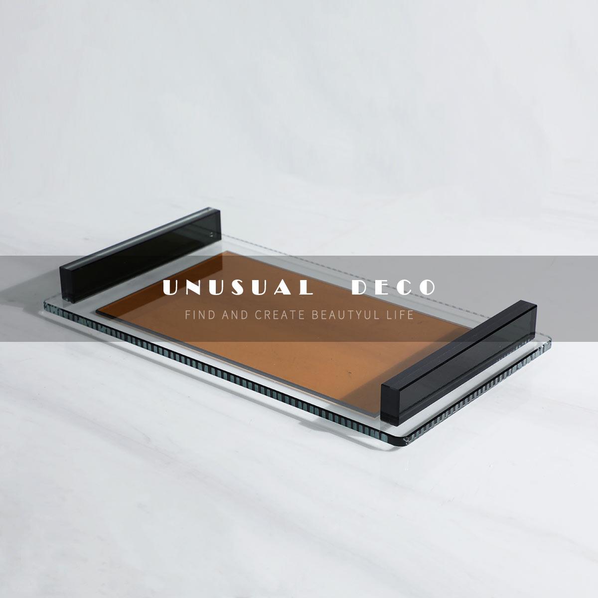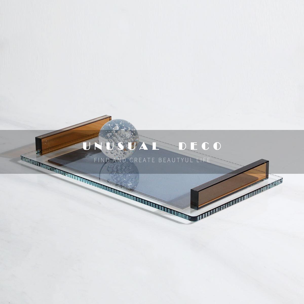 现代欧式轻奢灰色水晶玻璃托盘客厅餐厅桌面摆盘样板房售楼处饰品