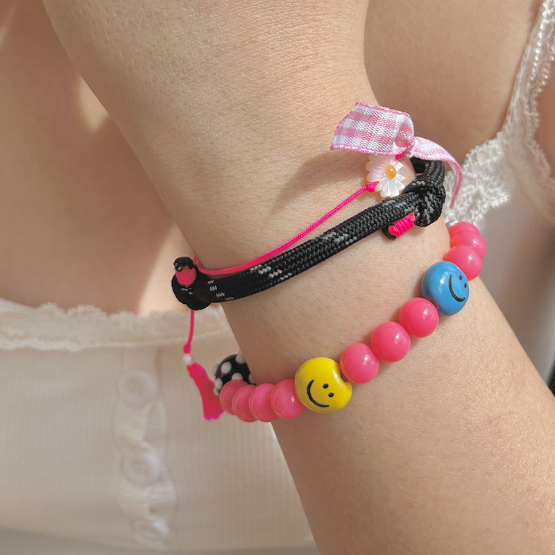 手工制作百搭ins荧光粉童趣时尚手绳夜骑反光撞色荧光手链男女