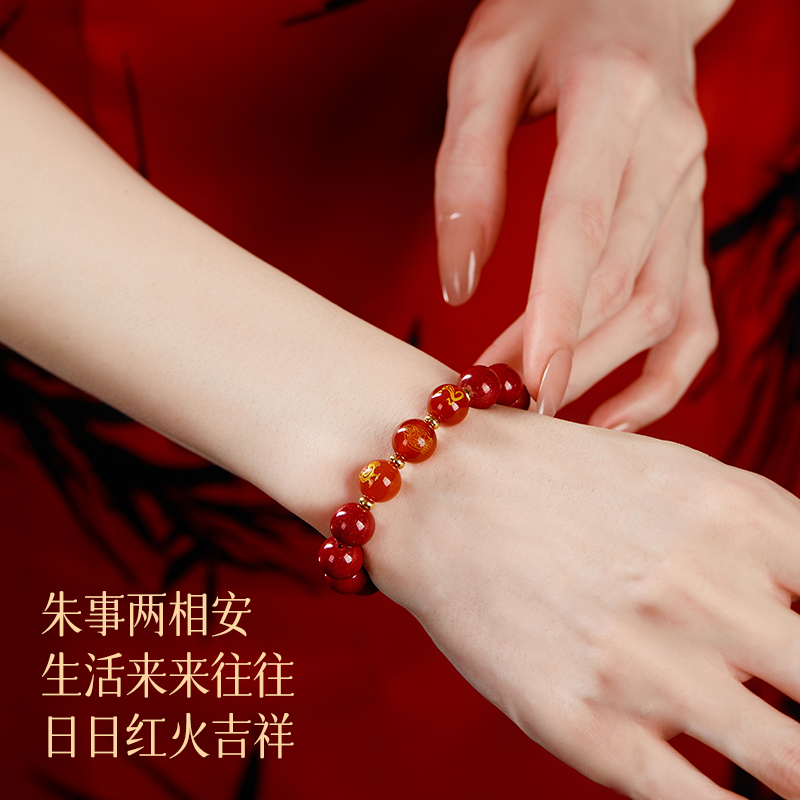 朱砂手串女款官方旗舰店天然红玛瑙属马三合六合手链本命年礼物